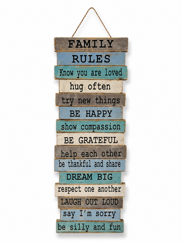 Houten Wandbord “Family Rules” – Boho Wanddecoratie (± 80 cm)