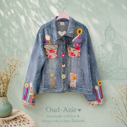 Uniek geborduurd spijkerjasje – bloemen